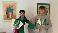 Die Schülerinnen und Schüler der Klasse 9b gestalteten für sie im Rahmen des Deutschunterrichts Grußkarten mit Blumenmotiven. Auf der Karte sind wilde Orchideen der Schwäbischen Alb und das Gedicht „Frühling“ von Friedrich Hölderlin abgebildet. Mit dieser Osteraktion grüßte die Klasse alle sehr herzlich.