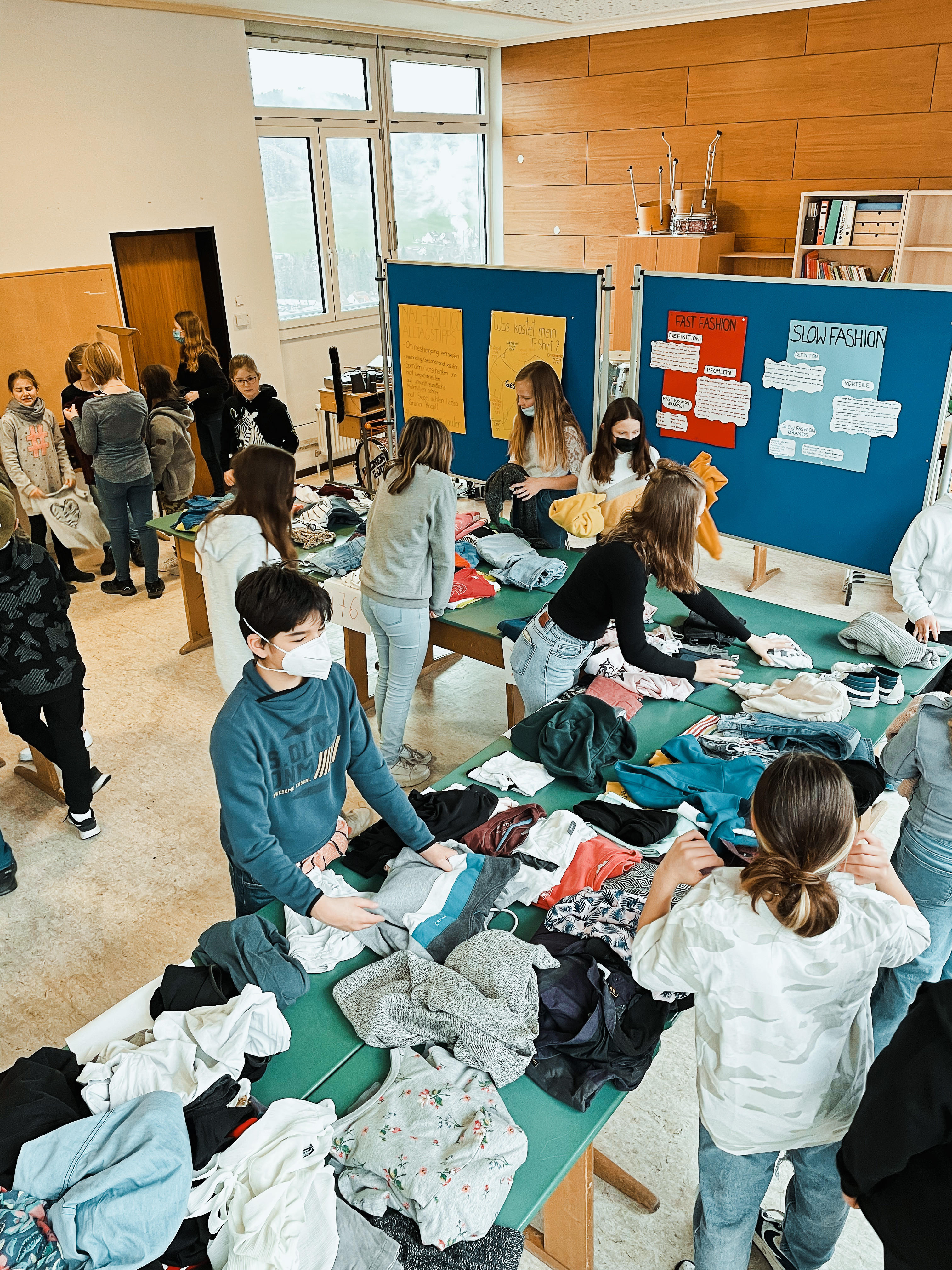 Am vergangenen Freitag, den 08.04.22, fand unsere große SMV-Kleidertauschbörse statt. Dabei konnten sich alle Schüler*innen nicht nur tolle Kleidundsstücke aussuchen und untereinander tauschen, sondern sich auch gleichzeitig über wichtige Themen wie Nachhaltigkeit, dem Unterschied zwischen Fast Fashion und Slow Fashion sowie faire Mode schlau machen.