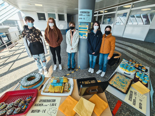 Beim Kuchenverkauf in der großen Pause konnten wir insgesamt Spenden in Höhe von 225 Euro sammeln - ein tolles Ergebnis! Wir freuen uns sehr, mit dieser Summe die Nothilfe der Caritas International im Ukraine-Krieg unterstützen zu können und damit unsere Solidarität mit den Menschen in der Ukraine zum Ausdruck zu bringen.