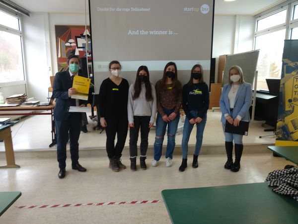 Den ersten Platz sicherte sich das Team „Faske“ mit ihrer Idee eines farblichen Indikators für eine Schutzmaske, der anzeigt, wenn die Maske ihre Schutzwirkung verliert. Die Maske ist wiederverwendbar, wenn sie entsprechend getrocknet wird. Das Team erhält die Chance, sich für einen Platz in der Landesauswahl Start-up BW Young Talents zu bewerben.