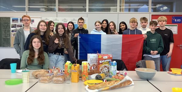 Am 22. Januar 2025 feierten die Klasse 9b und die Klasse 10 den Deutsch-Französischen Tag mit einem besonderen Frühstück. Die Schülerinnen und Schüler hatten sich im Vorfeld intensiv mit der deutsch-französischen Geschichte beschäftigt und wollten diesen Tag mit einem gemeinsamen Erlebnis entsprechend würdigen.